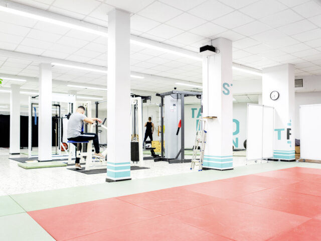 Auch im sportlichen Kontext agieren und reagieren sie anders, als es ihnen in zahlreichen Fitnessstudios vorgelebt wird. „Die räumlichen und finanziellen Voraussetzungen haben uns dazu bewegt, das Studio so zu gestalten, dass es den Jugendlichen Geräte für große Muskelgruppen und für den Kraftbereich wie Bankdrücken, Kreuzheben und Kniebeugen als Powerlifting bietet. Zusätzlich wurden verschiedene Möglichkeiten geschaffen, mit dem eigenen Körpergewicht zu trainieren, wie beispielsweise Klimmzug- und Dipstangen, Mattenflächen und Sprungkisten“, erklärt Florian Wiechmann das sportliche Konzept. Den Posten des Studioleiters hatte er von 2017 bis 2019 inne, ehe Marvin Schiller diesen Job übernahm.